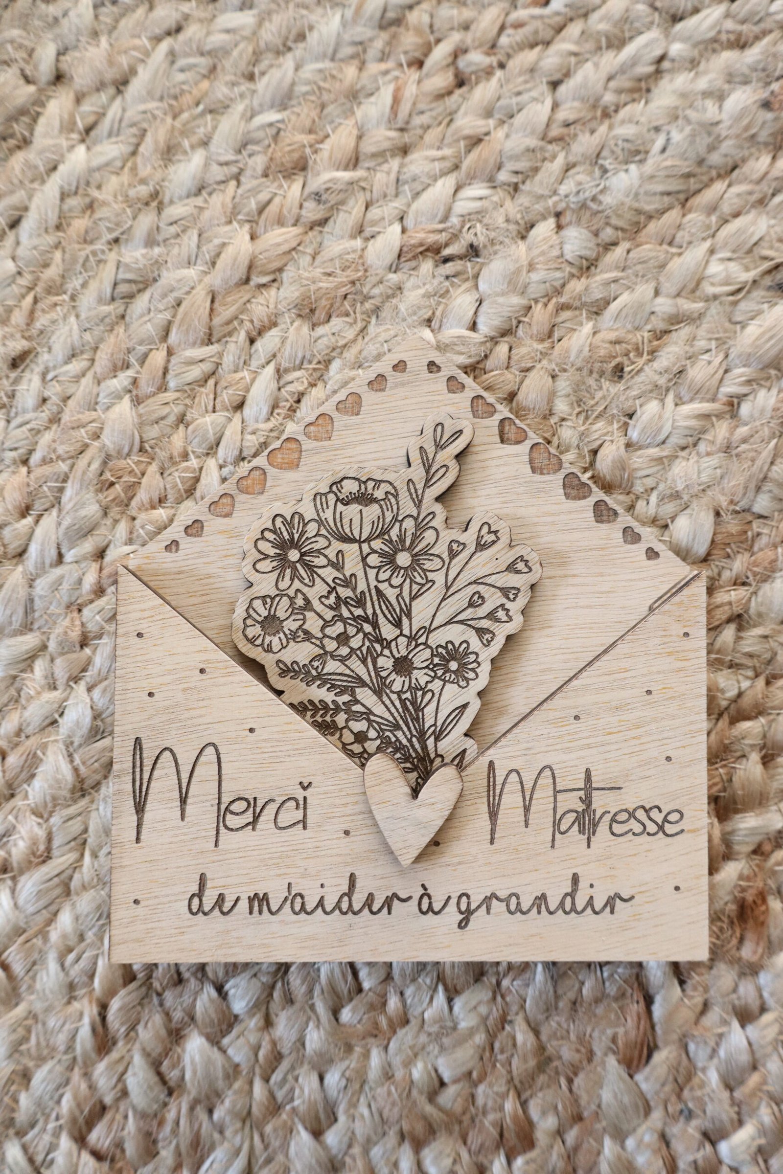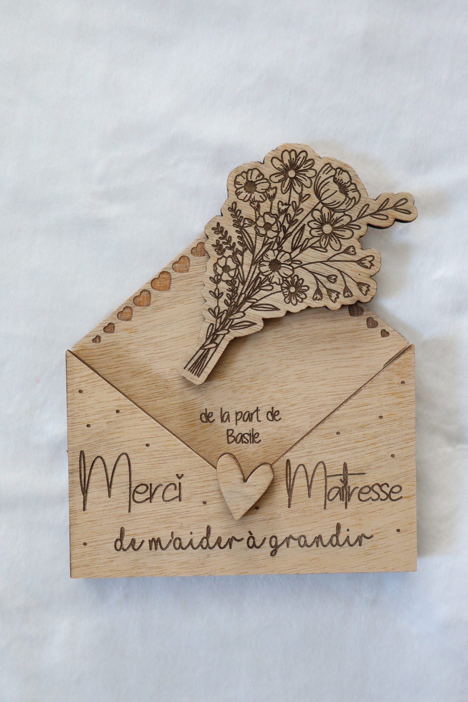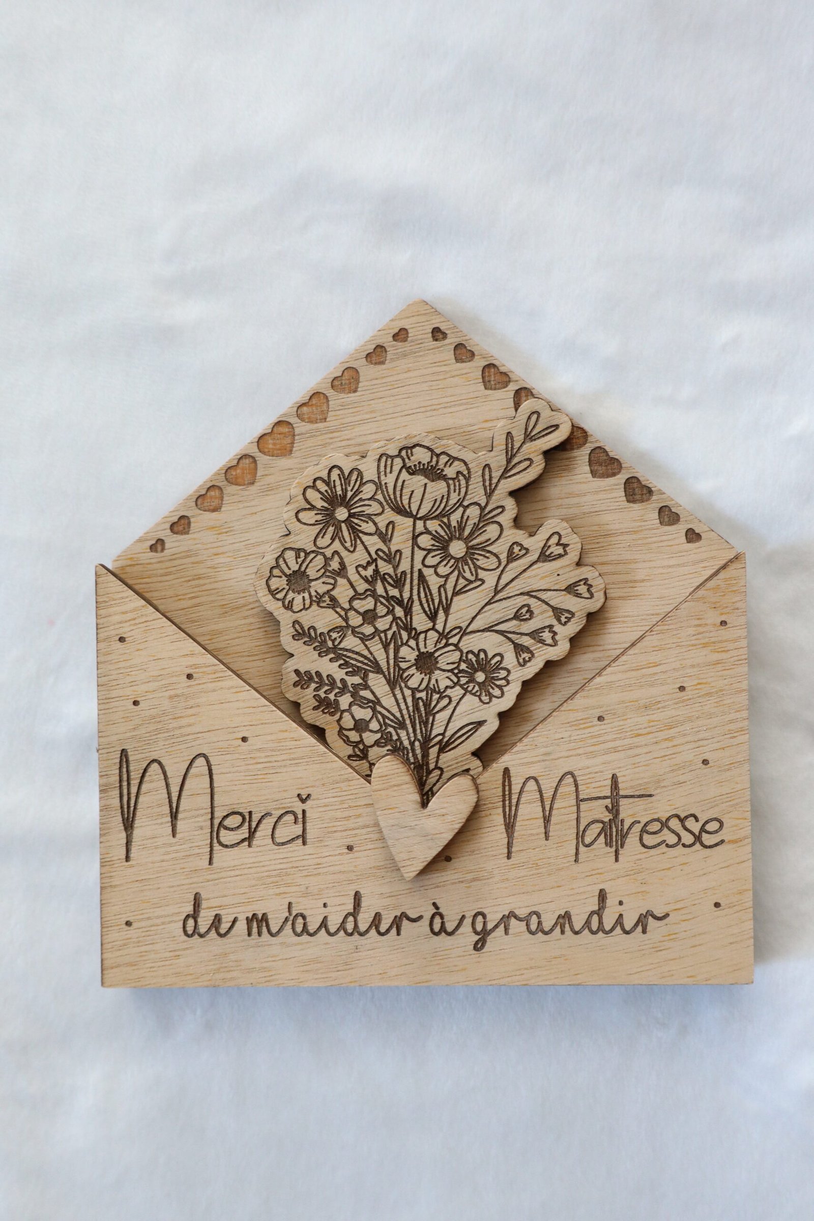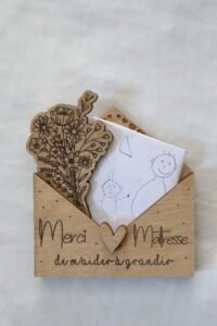 Enveloppe en bois à offrir à sa maitresse, nounou, atsem, …