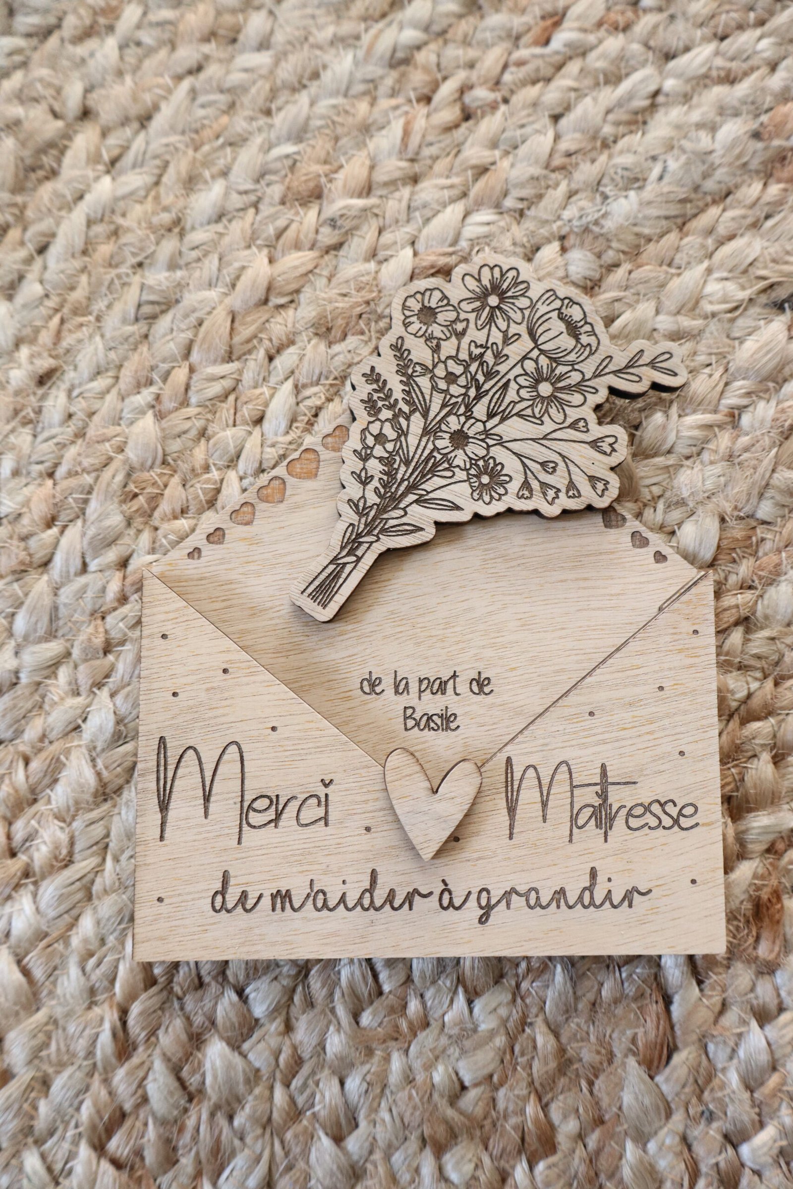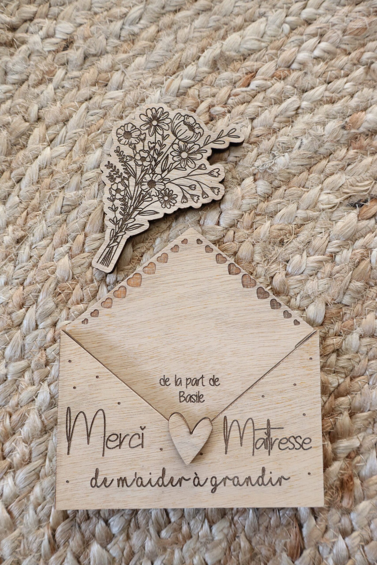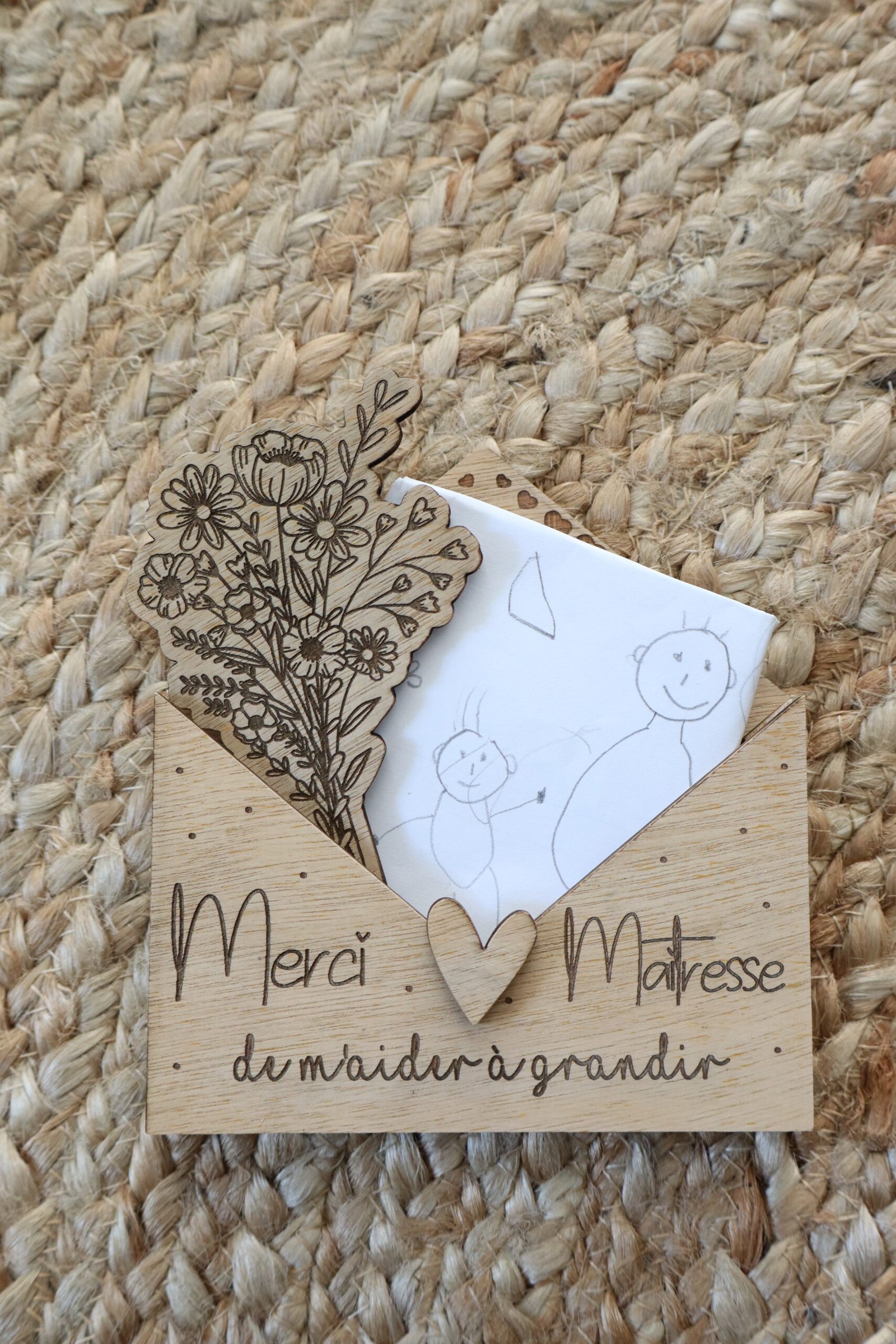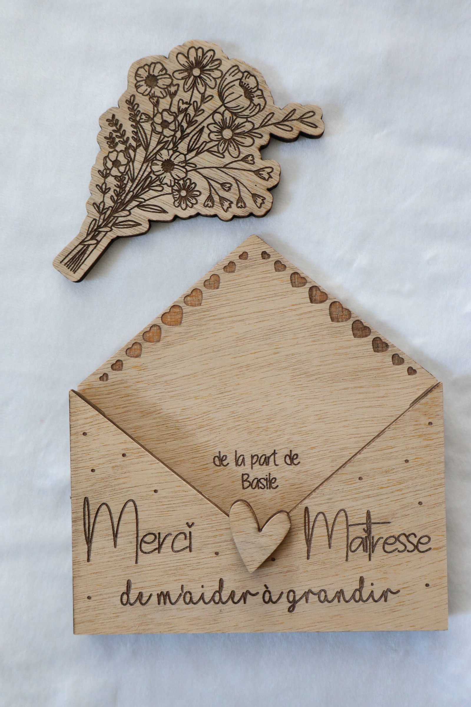 Enveloppe en bois à offrir à sa maitresse, nounou, atsem, …